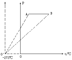 如图所示为一定质量的理想气体,由状态A等压变化到状态B的p-t图线,则此过程