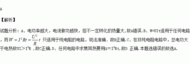 下列关于电功、电功率和焦耳定律的说法中不正确的是( )