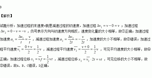 一辆汽车由静止开始做匀加速运动,经t 速度达到v,立即刹车做匀减速运动,又经2t 停下,汽车在加速阶段与在减速阶段: