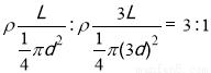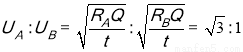 把两根同种材料的电阻丝分别连在两个电路中,A电阻丝长为L,直径为d,B电阻丝长为3L,直径为3d。要使两电阻丝在相同时间内产生的热量相等,加在两电阻丝上的电压之比应当满足: