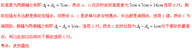 如图是水面上两列频率相同的波在某时刻的叠加情况,以波源S1、S2为圆心的两组同心圆弧分别表示同一时刻两列波的波峰(实线)和波谷(虚线),s1的振幅A1=4cm,S2的振幅A2=3cm,则下列说法正确的是_____(填正确答案标号。选对l个得2分,选对2个得4分,选对3个得5分。每选错1个扣3分,最低得分为0分)