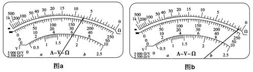 (1)测某金属丝的电阻率,为了精确的测出金属丝的电阻,需用欧姆表对金属丝的电阻粗测,下图是分别用欧姆档的“×1档”(图a)和“×10档”(图b)测量时表针所指的位置,则测该段金属丝应选择_______档(填“×1”或“×10”),该段金属丝的阻值约为_______