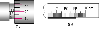 (2)所测金属丝的直径d如图c所示,d=_________mm;接入电路金属丝的长度L如图d(金属丝的左端从零刻度线对齐)所示,L=________cm。