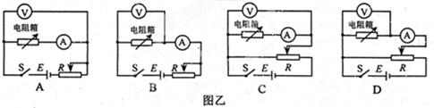 ②为了减小实验误差,要求实验过程中使用的电表指针偏转超过其量程的一半,四位同学分别设计的实验电路如图乙所示。最适合的是_______,电路中的滑动变阻器R应选用___