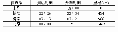 | 停靠站 | 到达时刻 | 开车时刻 | 里程(km) |