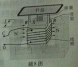 某电子天平原理如题8图所示,E形磁铁的两侧为N极,中心为S极,两极间的磁感应强度大小均为B,磁极宽度均为L,忽略边缘效应。一正方形线圈套于中心刺激,其骨架与秤盘连为一体,线圈两端C、D与外电路连接。当质量为m的重物放在秤盘上时,弹簧被压缩,秤盘和线圈一起向下运动(骨架与磁极不接触)随后外电路对线圈供电,秤盘和线圈恢复到未放重物时的位置并静止,由此时对应的供电电流I可确定重物的质量。已知线圈匝数为n,线圈电阻为R,重力加速度为g。问