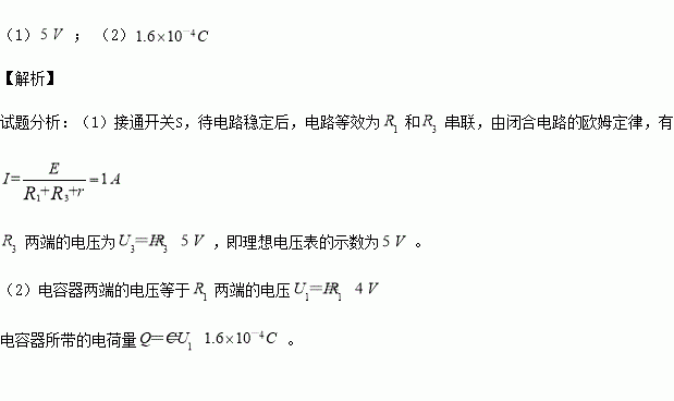 如图所示,电源的电动势E=10 V,内阻r=1 Ω,电容器的电容C=40 μF,电阻R1=R2=4 Ω,R3=5 Ω.接通开关S,待电路稳定后,求: