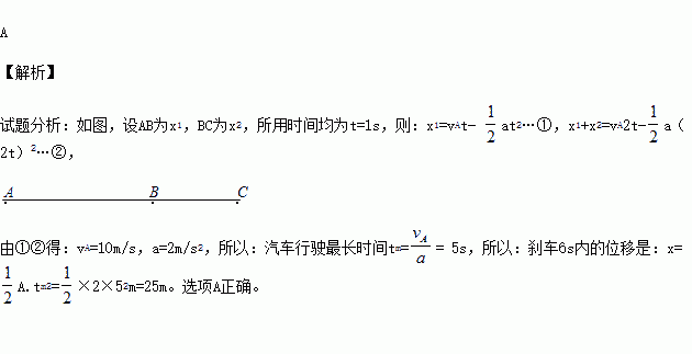 一辆公共汽车进站后开始刹车,做匀减速直线运动.开始刹车后的第1s内和第2s内位移大小依次为9m和7m.则刹车后6s内的位移是( )