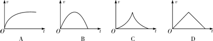 如图,在竖直向下的匀强磁场中有两根竖直放置的平行粗糙导轨CD、EF,导轨上置有一金属棒MN。t=0时起释放棒,并给棒通以图示方向的电流,且电流强度与时间成正比,即I=kt,其中k为常量,金属棒与导轨始终垂直且接触良好。则棒的速度v随时间t变化的可能是( )