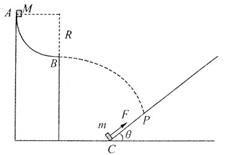 (2)Èô½ðÊô»¬¿éMÀ뿪Bµãʱ£¬Î»ÓÚÐ±Ãæµ×¶ËCµã¡¢ÖÊÁ¿m=1 kgµÄÁíÒ»»¬¿é£¬ÔÚÑØÐ±ÃæÏòÉϵĺ㶨ÀÁ¦F×÷ÓÃÏÂÓɾ²Ö¹¿ªÊ¼ÏòÉϼÓËÙÔ˶¯£¬Ç¡ºÃÔÚPµã±»M»÷ÖС£ÒÑÖª»¬¿émÓëÐ±Ãæ¼ä¶¯Ä¦²ÁÒòÊý