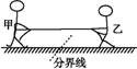 如图所示,甲、乙两人在冰面上“拔河”.两人中间位置处有一分界线,约定先使对方过分界线者为赢.若绳子质量不计,冰面可看成光滑,则下列说法正确的是( )