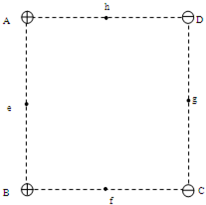 (2012年5月6日河南六市联考理综物理)如图所示,四个点电荷A、B、C、D分别位于正方形的四个顶点上,A、B所带电荷量均为+q,C、D所带电荷量均为-q。e、f、g、h分别位于正方形的四个边的中点。用Ee、Ef分别表示e、g这两点的电场强度,用φf、φh分别表示f、h这两点的电势,则以下关系正确的是