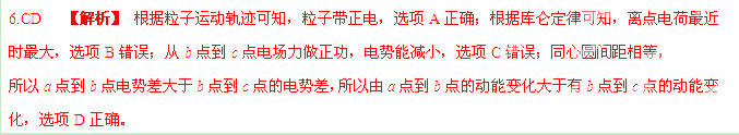 图中虚线为一组间距相等的同心圆,圆心处固定一带正电的点电荷。一带电粒子以一定初速度射入电场,实线为粒子仅在电场力作用下的运动轨迹,a、b、c三点是实线与虚线的交点。则该粒子