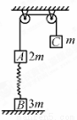 如图所示,质量为2m的物体A经一轻质弹簧与地面上的质量为3m的物体B相连,弹簧的劲度系数为k,一条不可伸长的轻绳绕过定滑轮,一端连物体A,另一端连一质量为m的物体C,物体A、B、C都处于静止状态.已知重力加速度为g,忽略一切摩擦.