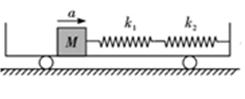 如图所示,在水平面上运动的小车内,有一质量为M的物块与两根劲度系数分别为k1、k2的弹簧连接,小车向右以加速度a的大小做匀加速直线运动。已知两根弹簧的形变量总和均为△x,不计物体与小车间的摩擦。则图中物块的加速度a等于 ( )