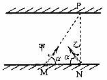 如图所示,甲、乙两船在同一条河流中同时开始渡河,M、N分别是甲、乙两船的出发点,两船头与河岸均成α角,甲船船头恰好对准N点的正对岸P点,经过一段时间乙船恰好到达P点,如果划船速度大小相同,且两船相遇,不影响各自的航行,下列判断正确的是( )