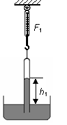 如右图所示,一端开口,一端封闭的玻璃管,封闭端有一定质量的气体,开口端置于水银槽中,用弹簧测力计拉着玻璃试管而平衡,此时管内外水银面高度差为