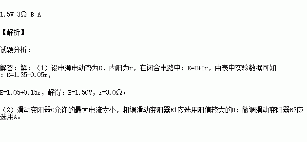 (1)由第1组和第3组数据列方程组可解得电源电动势E= V,内阻r= Ω。