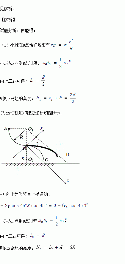 (1)P点至少距离地面多高,小球可在B点脱离轨道