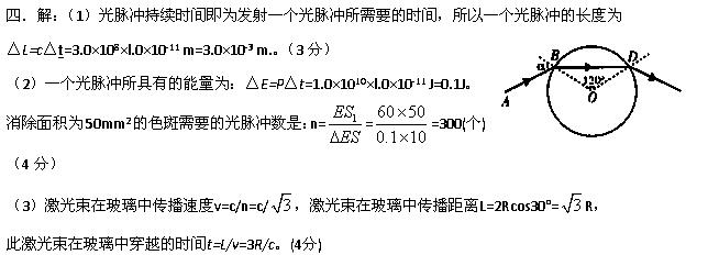 ,光在真空中的传播速度为c,求此激光束在玻璃中穿越的时间。