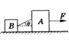 如图所示,在水平地面上放着A、B两个物体,质量分别为M、m,且M>m,它们与地面间的动摩擦因数分别为μA、μB,一细线连接A、B,细线与水平方向成θ角,在A物体上加一水平力F,使它们做匀速直线运动,则 [ ]