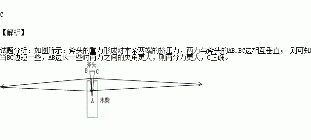 如图所示是山区村民用斧头劈柴的剖面图,图中BC边为斧头背,AB.AC边是斧头的刃面,要使斧头容易劈开木柴,则