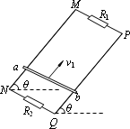 如图所示,平行金属导轨MN和PQ与水平面成θ角,导轨两端各与阻值均为R的固定电阻R1和R2相连,匀强磁场垂直穿过导轨平面.质量为m、电阻为R/2的导体棒以一定的初速度沿导轨向上滑动,在滑动过程中导体棒与金属导轨始终垂直并接触良好.已知t1时刻导体棒上滑的速度为v1,此时电阻R1消耗的电功率为P1;t2时刻导体棒上滑的速度为v2,此时电阻R2消耗的电功率为P2,忽略平行金属导轨MN和PQ的电阻且不计空气阻力.则