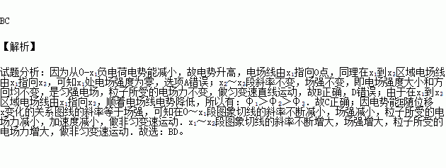 一带负电的粒子只在电场力作用下沿x轴正向运动,其电势能EP随位移x变化的关系如图所示,其中O---x2段是对称的曲线,x2---x3段是直线,则下列说法正确的是