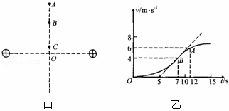 两个等量同种电荷固定于光滑水平面上,其连线中垂线上有A、B、C三点,如图甲所示.一个电 量为2C,质量为1kg的小物块从C点静止释放,其运动的v~t图象如图乙所示,其中B点处为整 条图线切线斜率最大的位置(图中标出了该切线).则下列说法正确的( )