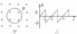 一环形线罔放在匀强磁场中,设第1s内磁感线垂直线圈平面向里,如图甲所示.若磁感强度B随时间t变化的关系如图乙所示,那么下列选项正确的是( )