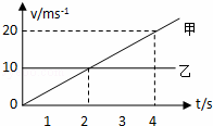 C. 开始运动2秒以后,乙的速度比甲的速度大