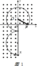 如图,xOy平面的一、二、三象限内存在垂直纸面向外,磁感应强度B=1T的匀强磁场,ON为处于y轴负方向的弹性绝缘薄挡板,长度为9m,M点为x轴正方向上一点,OM=3m.现有一个比荷大小为