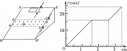一个质量m=0.1kg的正方形金属框总电阻R=0.5Ω,金属框放在表面绝缘且光滑的斜面顶端(金属框上边与AA′重合),自静止开始沿斜面下滑,下滑过程中穿过一段边界与斜面底边BB′平行、宽度为d的匀强磁场后滑至斜面底端(金属框下边与BB′重合),设金属框在下滑过程中的速度为v,与此对应的位移为s,那么v2﹣s图象如图所示,已知匀强磁场方向垂直斜面向上,g=10m/s2.