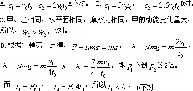 A.若F1、F2作用时间内甲、乙两物体的位移分别为s1,s2,则s1>s2