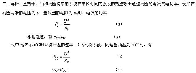 ,α称为电阻的温度系数。试求此线圈电阻的温度系数。假设量热器及其中的油以及线圈所构成的系统温度升高的速率与该系统吸收的热量的速率(即单位时间内吸收的热量)成正比;对油加热过程中加在线圈两端的电压恒定不变;系统损失的热量可忽略不计。