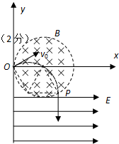 (2)电子沿x轴正方向射入磁场经$\frac{1}{4}$圆弧后,以速度v垂直于电场方向进入电场,