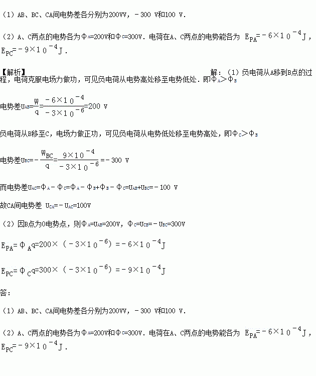 (1)AB、BC、CA间电势差各为多少?
