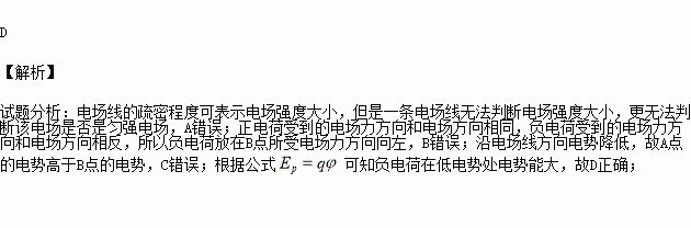 D.负电荷放在B点的电势能比放在A点的电势能大