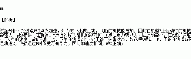 D.飞船在轨道1上运行经过P点的加速度等于在轨道2上运行经过P点的加速度