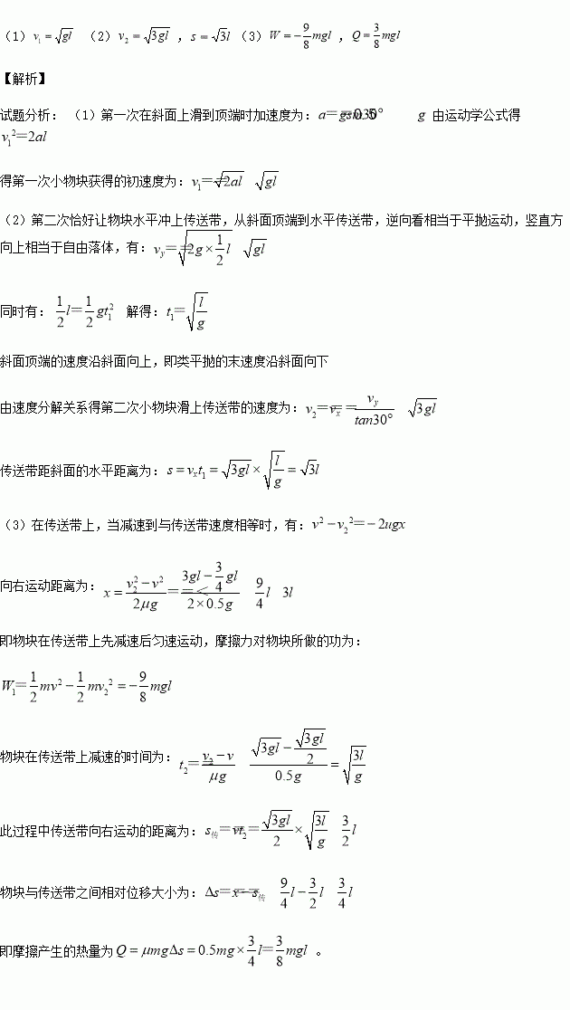 (3)第二次小物块通过传送带过程中摩擦力对物块所做功以及系统产生的热量。