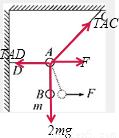 水平方向:TAD=TACcosα+F,TACcosα不变,而F逐渐变大,故TAD逐渐变大;