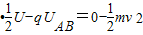 如图所示,C、D两带电平行金属板间的电压为U,A、B也为一对竖直放置的带电平行金属板,B板上有一小孔,小孔在C、D两板间的中心线上。一质量为m、带电量为+q的粒子(不计重力)从D 板边缘的O点以速度vo斜向射入C、D板间,穿过B板的小孔运动到紧靠A板的P点时速度恰好为零,则A、B两板间的电压为( )