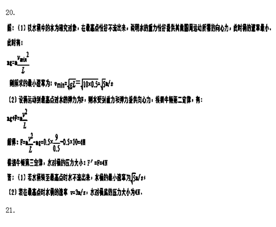⑵若在最高点水桶的速率v=3m/s,求水对桶底的压力。