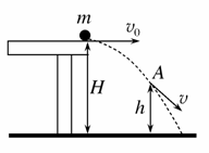 在高度为H的桌面上以速度v0水平抛出质量为m的物体,当物体落到距地面高为h的A点时,速度为v,如图所示,不计空气阻力,以地面为参考平面.下列说法中正确的是 ( )