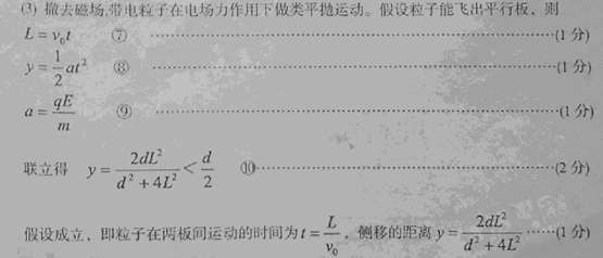 (3)撤去磁场,保持(2)问中两板间电压和粒子入射速度不变,粒子在两板间运动的时间及侧移的距离为多少?