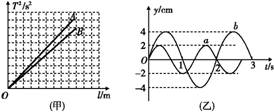 l图像,如图(甲)所示.去北京大学的同学所测实验结果对应的图线是 (填“A”或“B”).另外,在南京大学做探究的同学还利用计算机绘制了a、b两个摆球的振动图像如图(乙),由图可知,两单摆摆长之比