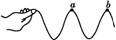 用手握住较长软绳的一端连续上下抖动,形成一列简谐横波.某一时刻的波形如图所示,绳上a、b两质点均处于波峰位置.下列说法正确的是( )
