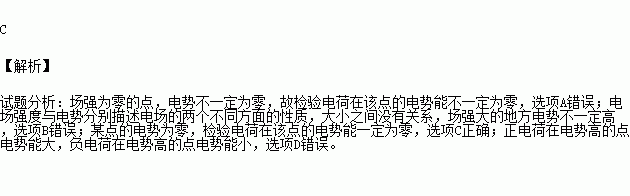 A.某点的场强为零,检验电荷在该点的电势能一定为零