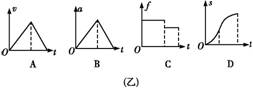如图(甲)所示,物体沿斜面由静止滑下,在水平面上滑行一段距离后停止,物体与斜面和水平面间的动摩擦因数相同,斜面与水平面平滑连接.图(乙)中分别表示物体速度大小v、加速度大小a、摩擦力大小f和物体运动路程s随时间t变化的关系.图(乙)中可能正确的是( )