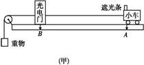 某个同学分别做“探究加速度与力、质量关系”的实验.如图(甲)所示是该同学探究小车加速度与力的关系的实验装置,他将光电门固定在水平轨道上的B点,用不同重物通过细线拉同一小车,每次小车都从同一位置A由静止释放.